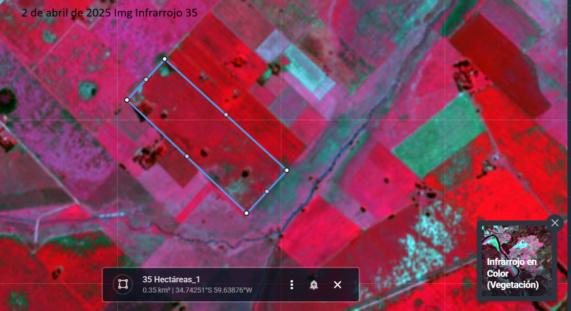 Las 35 hectáreas presentan una combinación equilibrada entre sectores agrícolas (Su7 y Su8) y zonas bajas ganaderas (Co146 y TJ), lo que permite desarrollar un planteo mixto eficiente y sustentable.